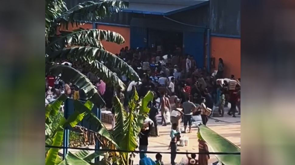 Dalam video yang beredar, terlihat warga berebut masuk ke dalam gudang. Selanjutnya, mereka membawa keluar beras serta minyak goreng.