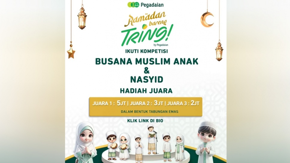 “Ramadan Bareng Tring by Pegadaian, ikuti kompetisi busana muslim anak & rasyid,” tulisnya, dilihat dari unggahan akun Instagram @medantalk, Rabu, 18 Februari 2026.