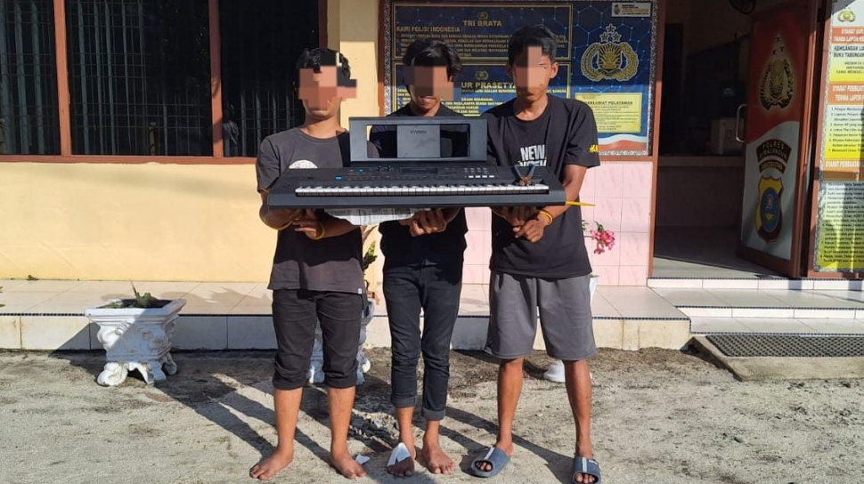Dari tangan para pelaku petugas mengamankan barang bukti gunting seng yang diduga digunakan untuk merusak jendela belakang rumah korban, satu unit keyboard Yamaha, satu pasang sepatu, raket badminton dan tabung gas 3 kg.