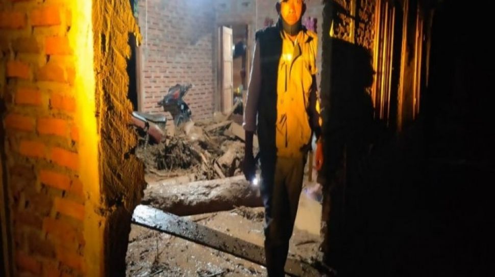 Kerusakan rumah warga akibat hantaman batang-batang kayu besar yang dibawa derasnya air bercampur lumpur.