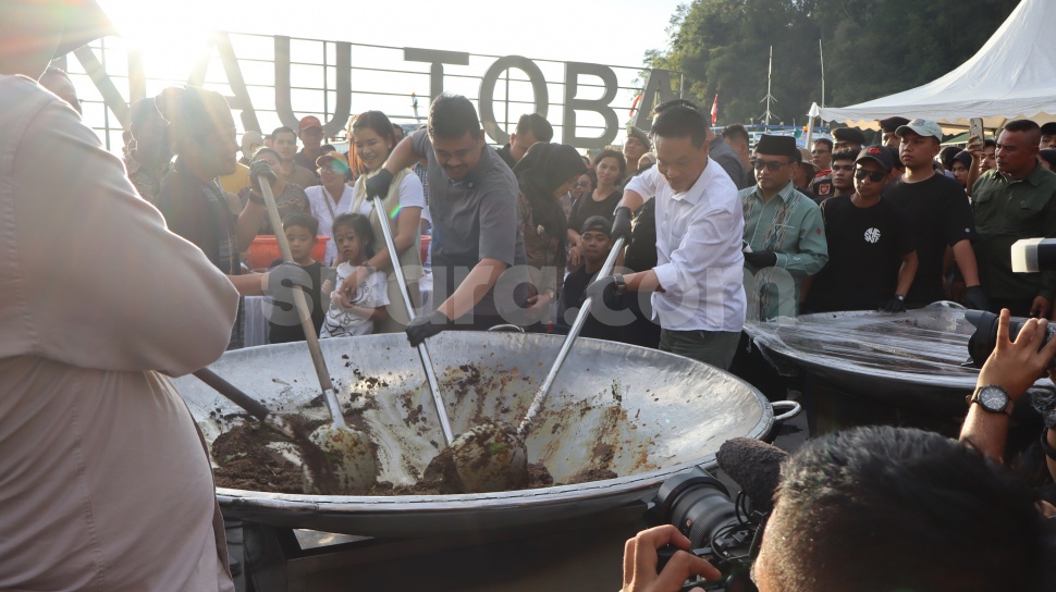 SuaraSumut.id - Pemandangan indah di Danau Toba, Sumatera Utara (Sumut), selaras dengan sukacita ribuan warga yang hadir dalam acara 'Mangan Baggal' memperingati HUT ke-77 Provinsi Sumut.