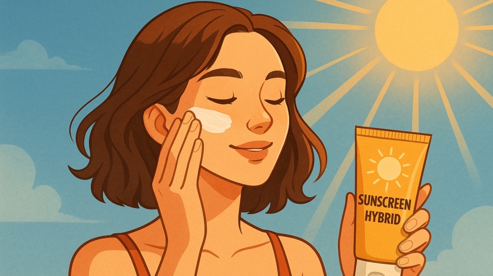 Apa itu sunscreen hybrid? Sunscreen hybrid adalah jenis tabir surya yang mengombinasikan kandungan dari chemical sunscreen (seperti avobenzone, octinoxate) dan physical sunscreen (seperti zinc oxide atau titanium dioxide).