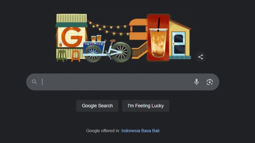 Google Doodle hari ini tampil dengan desain ikonik bertema kedai kopi. Huruf-huruf dalam logo Google disulap menjadi ilustrasi khas seperti gerobak kopi keliling, gelas kopi lengkap dengan sedotan, hingga balkon kecil yang menggambarkan budaya urban Indonesia.