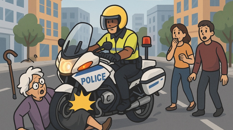 SuaraSumut.id - Sebuah insiden terjadi di tengah keramaian Jalan Sisingamangaraja, Kota Medan, Sumatera Utara (Sumut), Kamis 17 Juli 2025. Dua petugas patroli jalan raya (PJR) dari Ditlantas Polda Sumut yang mengendarai sepeda motor terlibat kecelakaan dengan seorang nenek berinisial R (60).