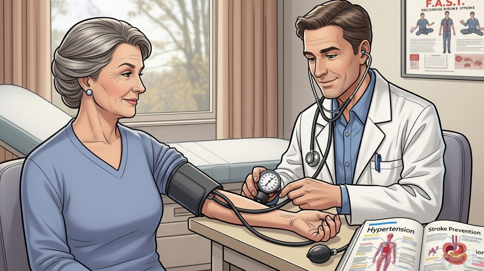 Ilustrasi dokter memeriksa tekanan darah pasien sebagai langkah pencegahan stroke. [Gemini Ai]