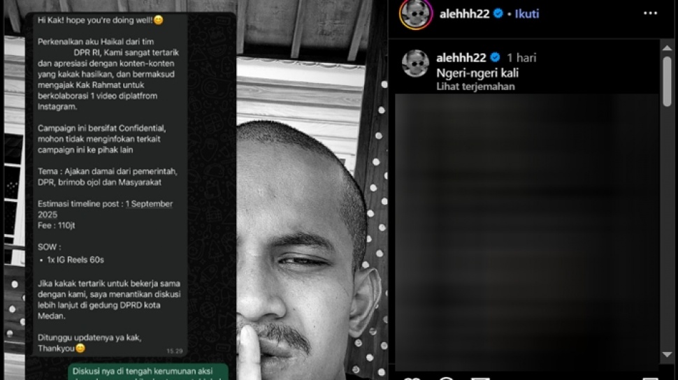 Tawaran itu mencapai Rp 110 juta hanya untuk sekali unggahan bertema "Ajakan damai dari pemerintah, Brimob, ojol, dan masyarakat".