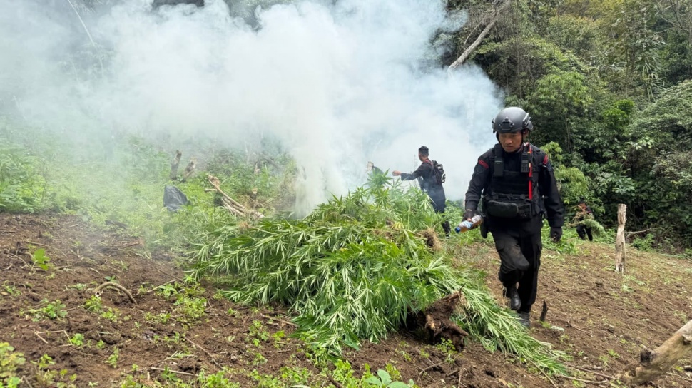 "Ladang ganja dimusnahkan dengan cara dibakar," ujarnya.