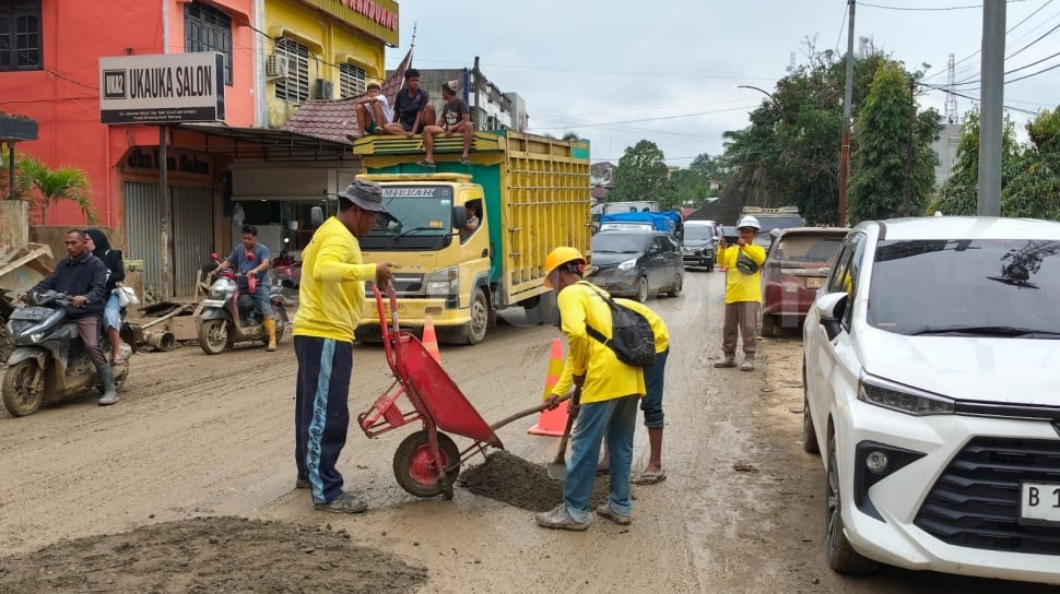 “Seminggu setelah itu mulai datang ngorek-ngorek. Petugas gabungan, PU semua mengorek. Ya gotong royong lah, Bang. Masing-masing yang punya tempat, masing-masing bersihkan,” katanya.