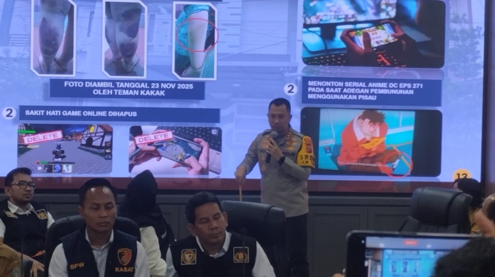 "Serta menonton serial anime DC episode 271 saat adegan pembunuhan menggunakan pisau. Si adik (pelaku) menikam ibunya dengan 26 kali tusukan di tubuh," sambungnya.
