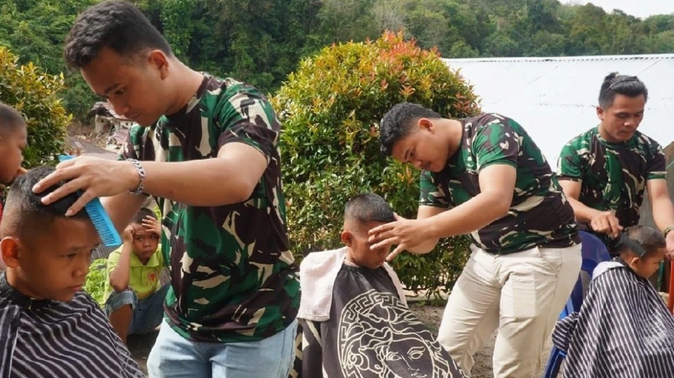 - TNI menyediakan layanan cukur rambut gratis bagi anak terdampak bencana di Desa Sibalanga dan Parsingkaman, Tapanuli Utara.