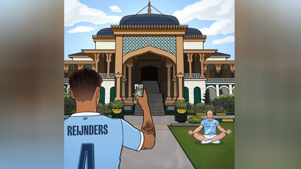 - Manchester City mengunggah ilustrasi Erling Haaland dan Tijjani Reijnders di latar Istana Maimun, Medan, Sumatera Utara.