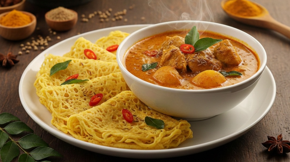 3. Roti Jala Kuah Kari, Kaya Rempah dan Menggoda