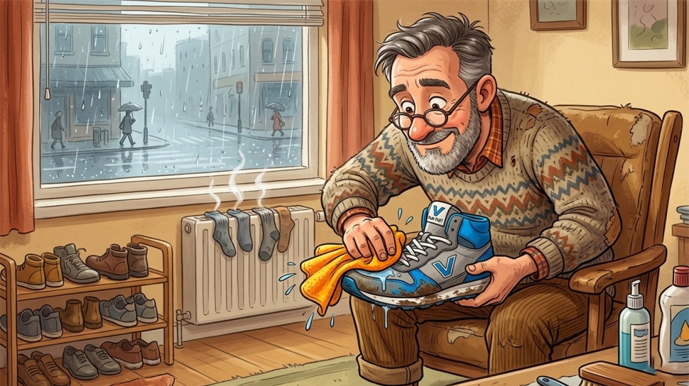 Air hujan membawa partikel polusi dan lumpur mikro yang bisa meresap ke serat sepatu. Langkah cepatnya adalah lap dengan kain microfiber, bersihkan noda dengan kain lembap, jangan tunggu kering sendiri. Semakin cepat dibersihkan, semakin kecil risiko noda permanen.